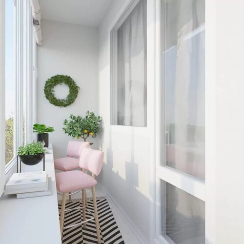 Интерьер балкона в белом цвете может быть как минималистичным, так и романтичным, в зависимости от выбранного стиля. Белый цвет позволяет создать пространство, наполненное светом и воздухом, что делает его идеальным местом для отдыха и релаксации.