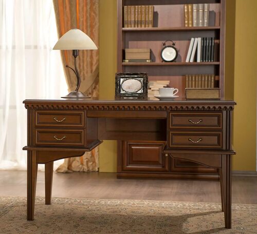 Деревянные письменные столы в классическом стиле представляют собой изысканные изделия, которые придают кабинету особый шарм. Они могут быть украшены резьбой, инкрустацией или фигурными ножками, что делает их по-настоящему уникальными.