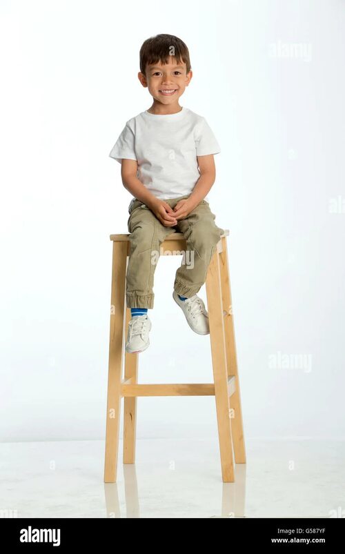 Мальчик сидит на табуретке