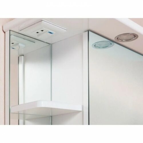 Благодаря наличию розетки, в шкафу для ванной можно удобно заряжать электронные устройства, использовать фен или другие электроприборы, не выходя из ванной комнаты.