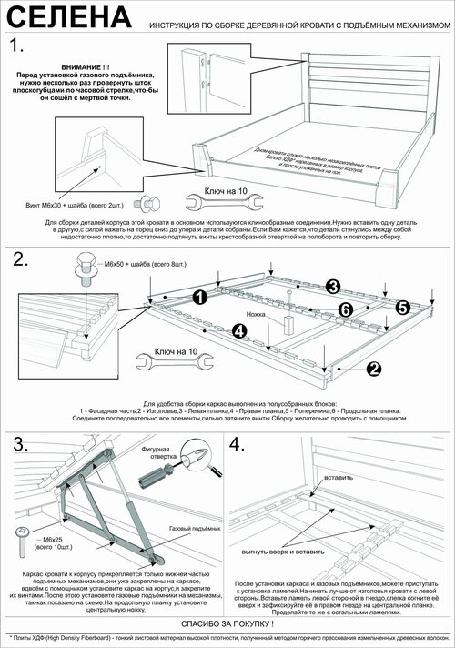 После установки ламелей завершите сборку кровати, проверьте все соединения и убедитесь, что кровать устойчиво стоит на полу. Поздравляем, ваша кровать Селена готова к использованию!