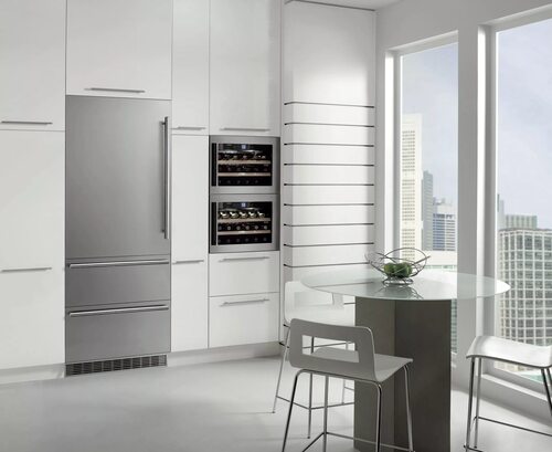 Фото 8: Шкаф с встроенным холодильником для компактных кухонь.