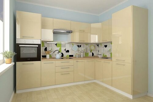 Угловые кухни обладают рядом преимуществ, таких как оптимальное использование пространства, возможность размещения большого количества хранения и удобство в использовании. Цвет ваниль придает кухне нежность и уют, делая пребывание в ней приятным и комфортным.