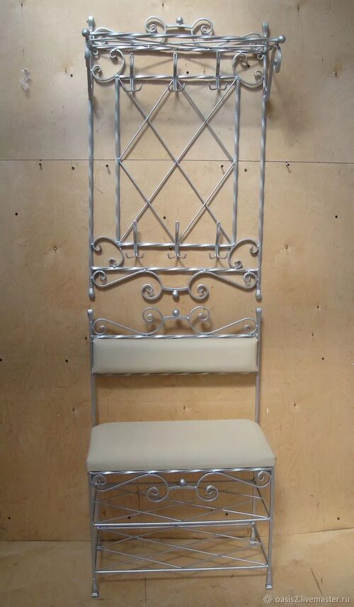 Кованая банкетка с вешалкой отличается высоким качеством материалов и уникальным дизайном. Ее изготовление требует мастерства и тщательной работы, что делает каждую деталь особенной. Благодаря вешалке, этот предмет мебели становится еще более функциональным, позволяя удобно разместить одежду и аксессуары.
