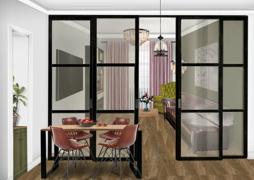 Раздвижные перегородки становятся все популярнее в дизайне интерьера, особенно при планировке кухни и гостиной в одном помещении. Они позволяют создать функциональные зоны и при этом сохранить открытость пространства.