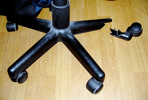 С помощью отвертки аккуратно снимите старые колесики с кресла. Будьте осторожны, чтобы не повредить основание кресла или поверхность пола. При необходимости, протрите основание кресла салфеткой.