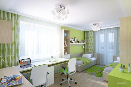 Одной из популярных идей для детской комнаты с двумя окнами является использование ярких цветов и игривых узоров. Фотографии в нашей статье демонстрируют, как можно сочетать различные оттенки и создавать уютную атмосферу.