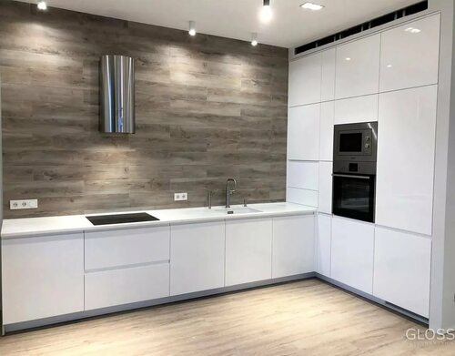 Угловая кухня без навесных шкафов в современном стиле - отличное решение для современных интерьеров. Она открывает пространство и придает кухне легкость и воздушность.