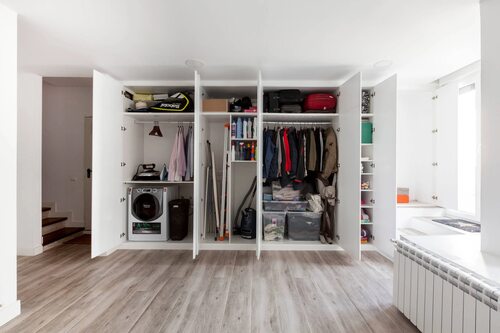 Гардеробная в прихожей со стиральной машиной