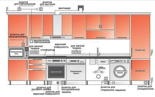 Схема кухонной электропроводки для подключения бытовой техники