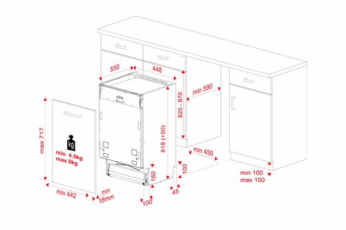 Встраиваемая посудомоечная машина шириной 45 см - отличное решение для компактных кухонь. Она легко устанавливается в мебель, занимает минимум места и обеспечивает отличное качество мытья посуды.