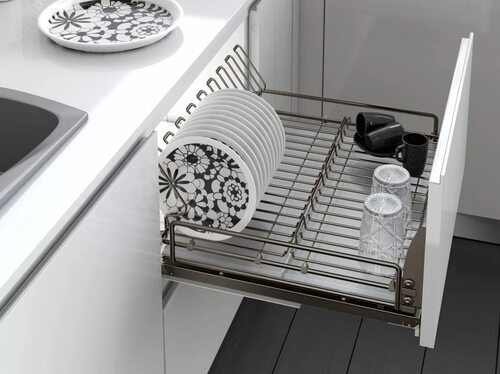 Кроме того, лоток под посуду в шкаф может быть изготовлен из различных материалов, таких как пластик, металл или дерево, что позволяет выбрать оптимальный вариант в соответствии с дизайном и стилем кухни.