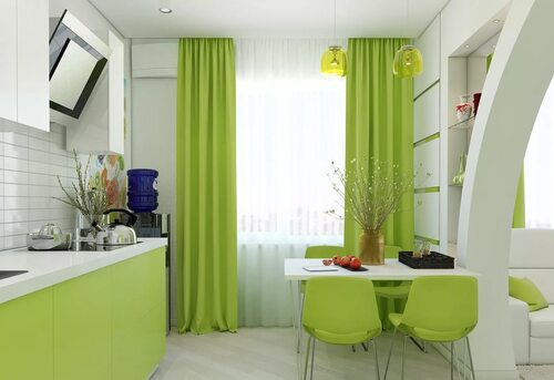 Салатовый цвет в интерьере кухни придает ему свежесть и легкость. Сочетание салатового с другими оттенками, такими как белый, серый или деревянные элементы, может создать гармоничный и стильный интерьер.