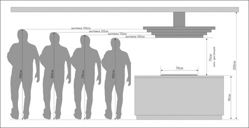 Оптимальное расстояние для установки вытяжки