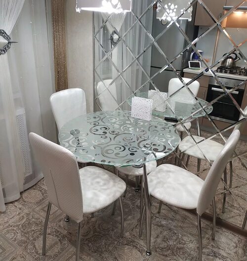 Зеркальная плитка в интерьере обеденной зоны на кухне