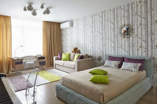 Зонирование спальни и гостиной в одной комнате 17 кв.м