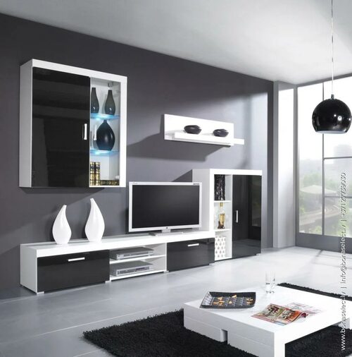 Черно белая стенка в интерьере