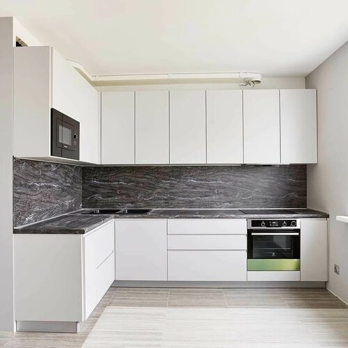 Кухня в белом глянцевом исполнении с серой столешницей является популярным выбором для современных интерьеров. Этот дизайн придает кухне чистоту, свет и простор, а также создает ощущение стильной элегантности.