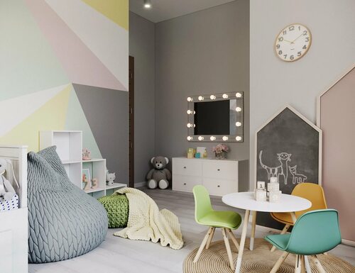Для маленьких детей отлично подойдут яркие и насыщенные цвета, такие как красный, желтый, синий и зеленый. Эти цвета стимулируют активность и развивают воображение. Вы можете использовать их как основные цвета интерьера или для акцентов, например, на стенах, текстиле и мебели.