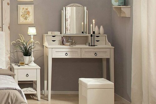 Благодаря удобным ящикам и полочкам, стол туалетный с зеркалом Марсель обеспечивает удобное хранение косметики, украшений и других необходимых мелочей. Зеркало позволяет удобно наносить макияж или выполнять утренние ритуалы ухода за собой.