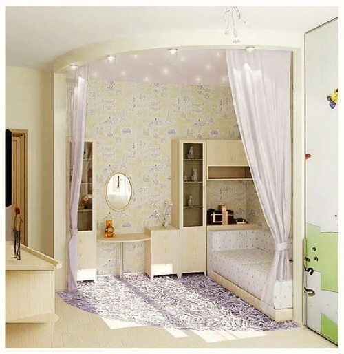 Фото 1: Пример зонирования детской и взрослой комнаты с использованием штор.