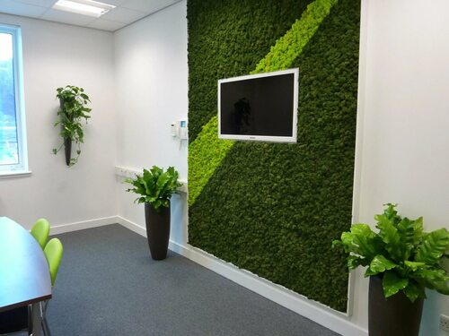 Стена из искусственной травы также может служить отличным акцентом в интерьере, привлекая внимание и добавляя оригинальности.