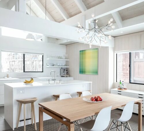Скандинавский стиль отлично подходит для дизайна потолка благодаря своей светлой цветовой палитре и использованию натуральных материалов. Белые и светлые оттенки создают визуальное увеличение пространства, а дерево придает потолку теплоту и уюта.