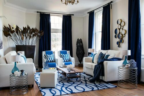 Какие занавески сочетаются с синим диваном