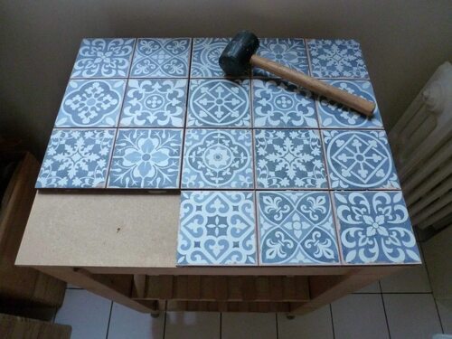 После подготовки поверхности можно приступать к укладке керамической плитки. Этот этап реставрации также требует точности и внимания к деталям. Фотографии этого этапа помогут вам увидеть, как правильно расположить плитку на столе.
