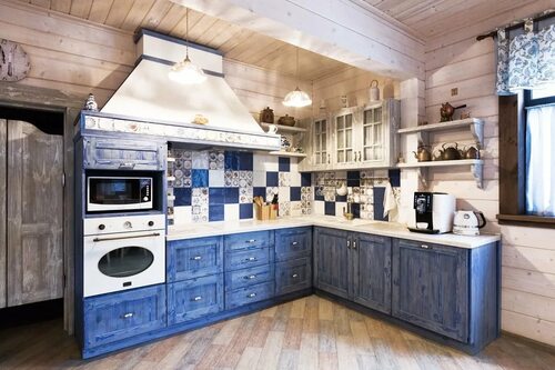 Кухня в стиле кантри с синими элементами - отличный выбор для тех, кто ценит уют и теплоту домашней атмосферы. Сочетание натуральных материалов, мягких оттенков и акцентов синего создаст неповторимый интерьер вашей кухни.