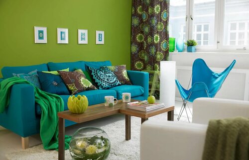 Использование синего и зеленого в дизайне интерьера