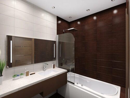 Применение коричневых плиток, мозаики, деревянных элементов или аксессуаров может добавить интересный контраст и природную текстуру в ванной комнате.