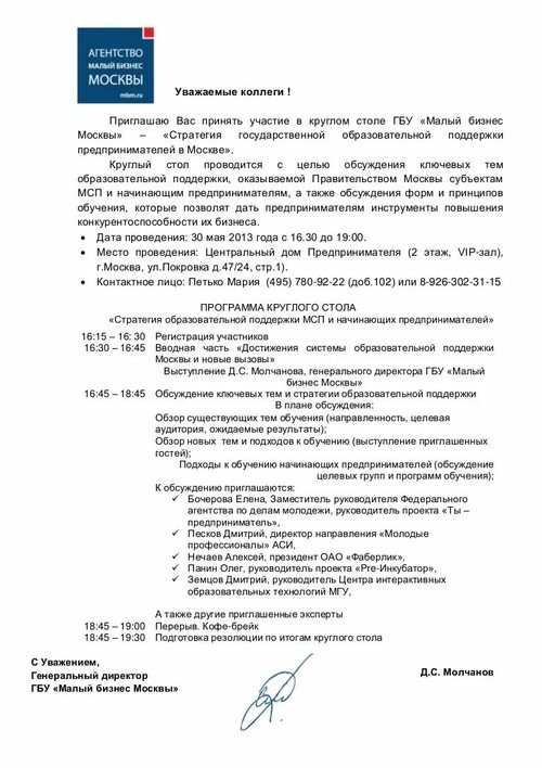 Фотографии приглашений на круглый стол