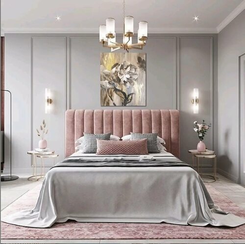 2. Минималистичная спальня с пудровой кроватью. Фото