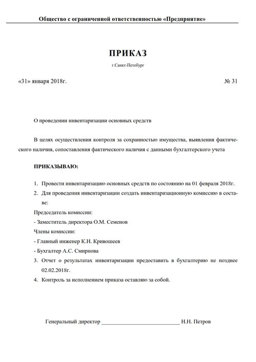 Образец приказа о списании мебели