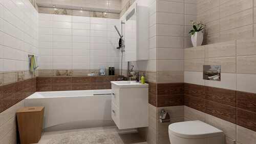 1. Горизонтальное расположение. Горизонтальное укладывание плитки создает ощущение пространства и визуально расширяет ванную комнату.