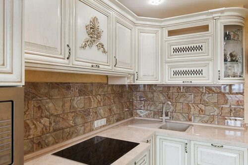 При выборе плитки для кухни в классическом стиле, важно учесть общий дизайн интерьера. Фартук из плитки может быть выполнен в различных цветовых решениях, от классических белых плиток до изысканных узоров и рисунков.