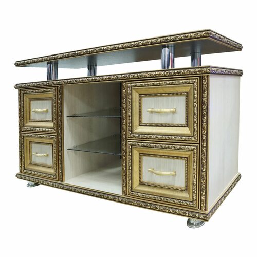 Элегантная тумба в стиле современной классики прекрасно впишется в интерьер гостиной. Изготовлена из массива дерева, с двумя выдвижными ящиками и полкой для аппаратуры. Фотографии этой модели вы можете увидеть на нашем сайте.