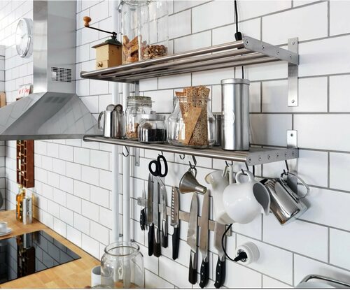 Навесные полки для кухни на рейлинги из нержавейки представляют собой удобное и стильное решение для организации пространства в кухне. Они обеспечивают удобный доступ к кухонным принадлежностям, а также создают дополнительные возможности для хранения.