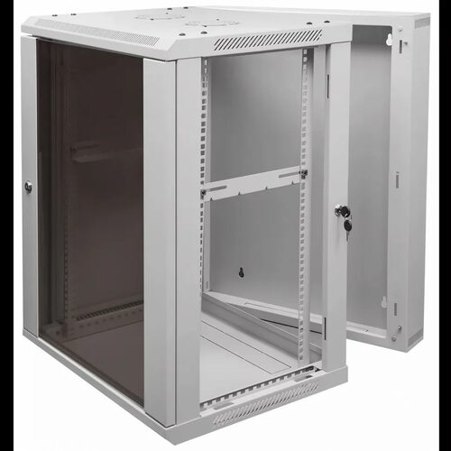 Данный шкаф имеет две секции, что обеспечивает удобство при размещении оборудования различных типов. Его размеры позволяют установить его на стене, что освобождает полезное пространство в помещении. Конструкция шкафа обеспечивает хорошую вентиляцию и защиту от пыли и влаги.