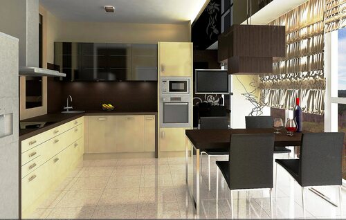 Бежево-черная цветовая палитра позволяет играть с контрастом и создавать интересные композиции. Бежевые оттенки могут быть использованы для столовой зоны или фасадов кухонной мебели, в то время как черные элементы добавляют современный акцент.