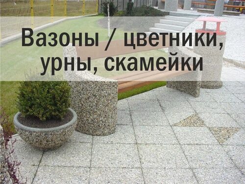 Разнообразие полусфер, урн, скамеек и вазонов
