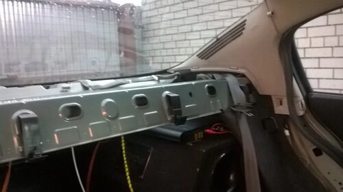 После удаления обшивки вы увидите крепления задней полки. Открутите их с помощью подходящего инструмента, следуя инструкциям и фотографиям из нашей статьи.