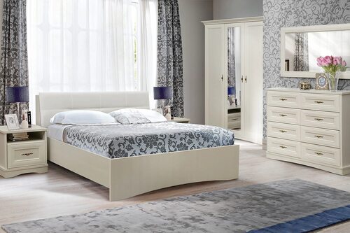 Коллекция включает в себя кровати, гардеробные шкафы, тумбочки, комоды и другие предметы мебели, которые помогут организовать пространство спальни так, как вам удобно.