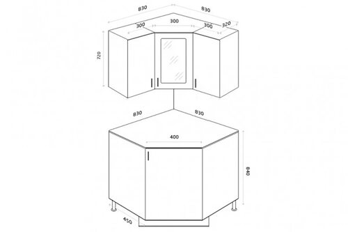 Верхний угловой модуль для кухни чертеж