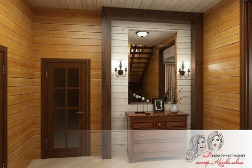 Ниже представлена подборка фотографий с различными вариантами дизайна прихожей из блокхауса для вдохновения и идей.