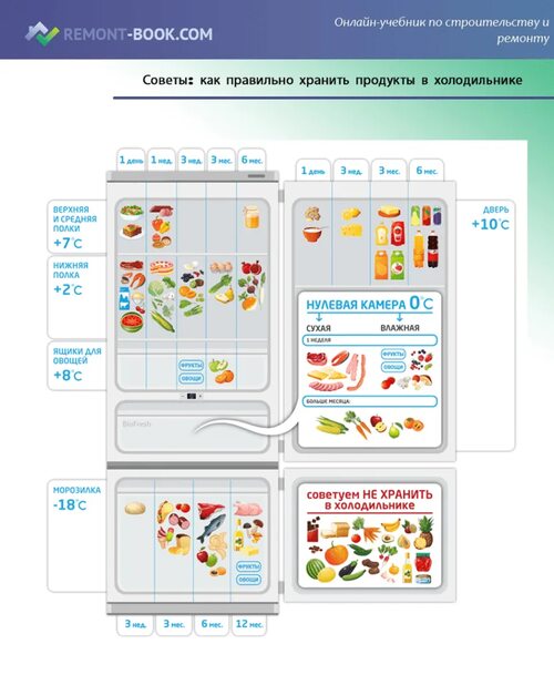Рекомендации по хранению продуктов в холодильной камере таблица