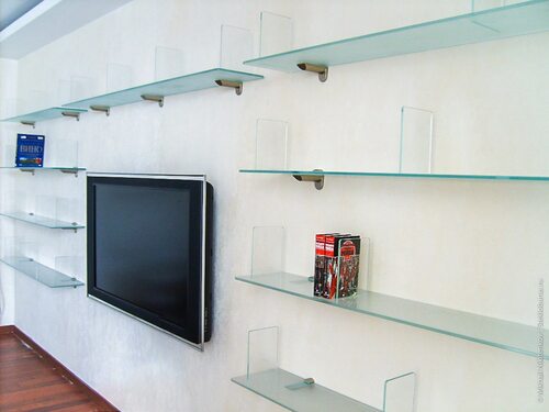 Стеклянные полочки в гостиной