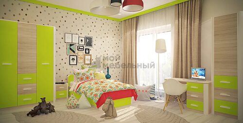 Для детской комнаты с зеленой мебелью также подойдут пастельные обои с изображением животных. Такой декор создаст мягкую и уютную атмосферу, а яркие зеленые акценты мебели будут гармонично смотреться на фоне нежных оттенков обоев.