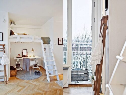 Маленькие студии с кроватью на чердаке становятся все более популярными в современных городских условиях, где каждый квадратный метр ценен. Этот удивительный дизайн позволяет использовать верхнюю часть комнаты для спальни, освобождая ценное пространство для других нужд.